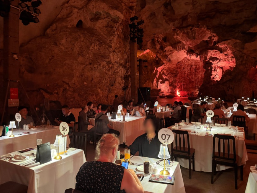 무엇보다 이곳의 진짜 매력은 음식보다 경험이라고 말하고 싶은데요. 하롱베이여행 중 동굴 안에서 공연을 보고, 그 공간에서 식사를 한다는 것 자체가 너무 특별하지 않나요?
