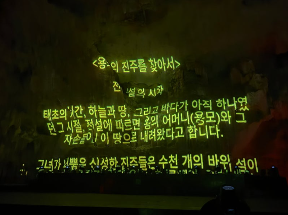 공연은 약 30분 정도 진행되는데 5부로 나뉘어 하롱베이의 전설과 문화를 주제로 구성된 공연이었답니다. 테이블과 스크린에 한국어 설명도 함께 제공돼 이해하기도 쉬웠고요.