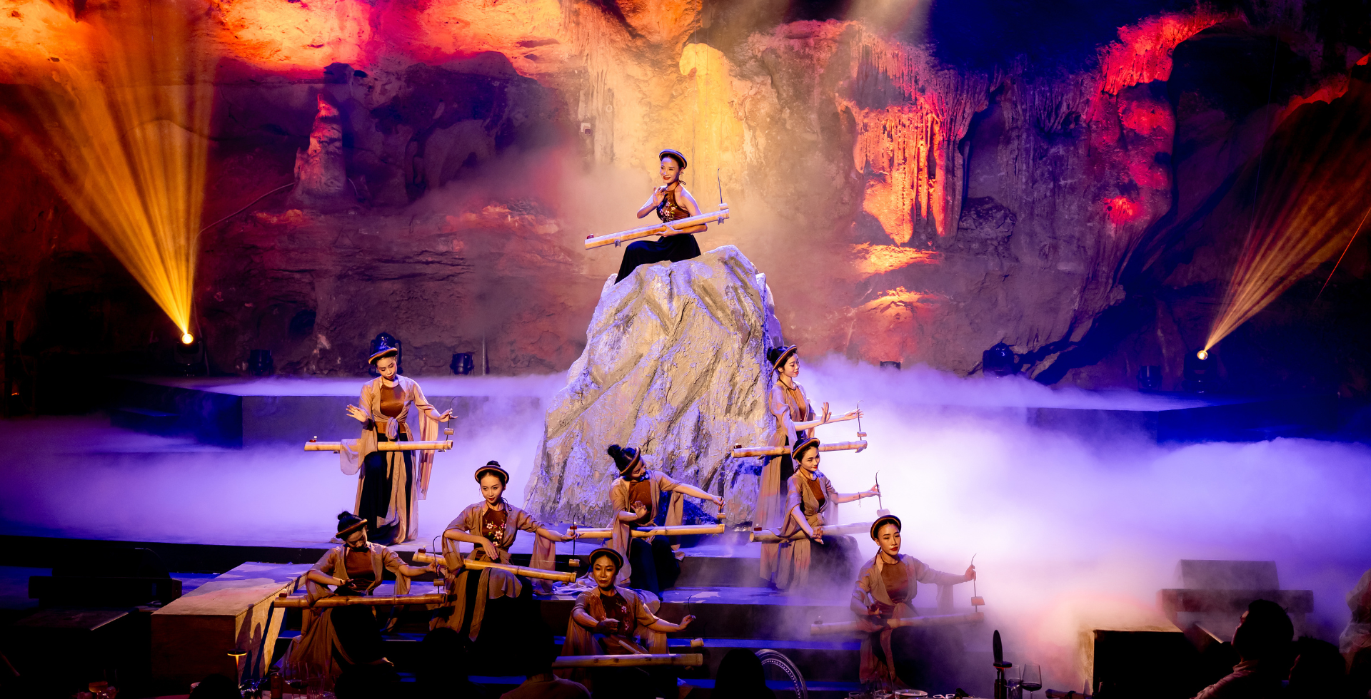 Chúng tôi khuyến nghị bạn đến trước giờ suất ít nhất 20 phút để thích nghi với không gian hang và chọn vị trí ngồi phù hợp. Bàn ở khu vực trung tâm và phía giữa hang thường cho góc nhìn bao quát nhất. Trong những phút cuối trước khi show bắt đầu, hãy gác điện thoại xuống một lần – để giây đầu tiên ánh sáng xuất hiện trên vách đá là giây bạn hoàn toàn hiện diện.